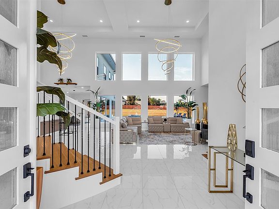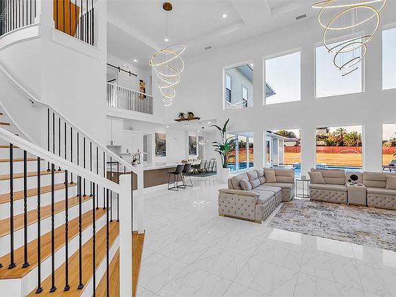 A showpiece of architectural brilliance and modern luxury, this 8-bedroom dream home is designed to command attention & capture the essence of fine living. Over 20-ft ceilings soar above walls of glass, lighting glimmers like art, and every space is curated to deliver drama & light. The sweeping staircase rises as a centerpiece, while panoramic windows reveal a perfect pool that glows with color at night, turning the backyard into a sanctuary of elegance.