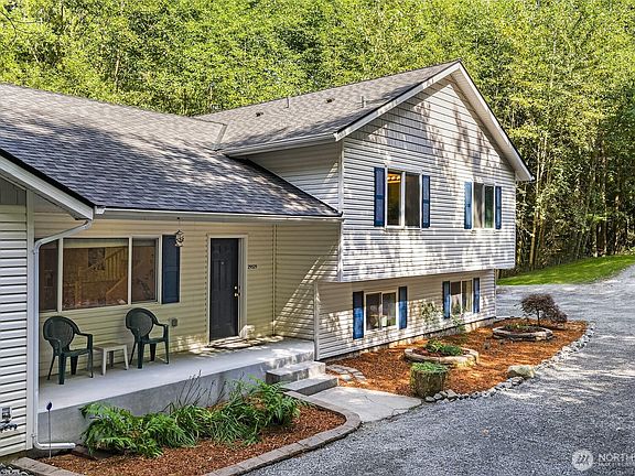 Discover serene living just minutes from Monroe in this beautifully updated home on a private 5-acre lot in a quiet 10-home community. Move-in ready with new carpet, trim, interior paint, updated sinks, toilets, bathroom flooring, and refinished showers and tubs. The kitchen features ample cabinetry, under-cabinet lighting, an island with power, and a plumbed refrigerator. The finished daylight basement includes new flooring, paint, a wood stove, large storage, and backyard access. Enjoy a jetted tub, new back porch, regraded lawn, fresh gravel driveway, and peaceful surroundings. A true retreat with modern comforts!