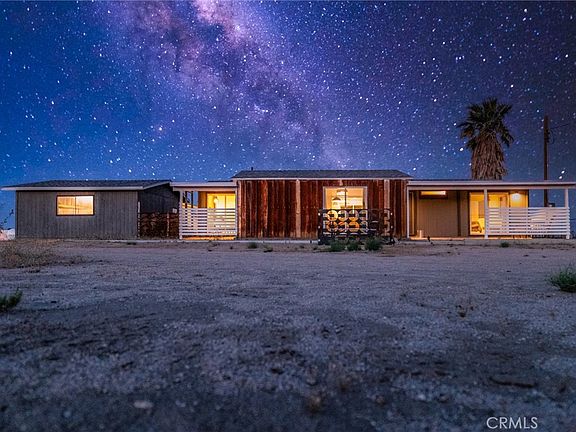 We are excited to present this very hip property! Welcome to 2953 Border Ave. Here is the opportunity to own a very special, well-designed, 3bed/ 2.5 bath private retreat fenced in on 4 acres in an ideal location (off a much desired car-friendly paved road). Affordable serenity found for those seeking a simpler way of living, less hassles and more fun! This turn-key/ move-in (ready) home is fully upgraded enabling you to simply unpack and start living. The primary bedroom windows offer views from bed! This bedroom and en-suite has the perfect amount of privacy away from the other two bedrooms which are opposite side of the house. All bedrooms have their own outdoor patio access with a sliding door. This home is priced to sell! Home has a new roof, and all new efficient systems (new water heater, air-conditioning & heating, plumbing & fixtures). Local designer has successfully implemented her Joshua Tree eclectic style & vibe into this must-see property. “Wander out yonder” settle in, and start enjoying the southern views from this exquisite parcel which is large enough to easily host guests, parties, events, and so forth under the infamous starry skies. It looks as if Barbie left her camper there. Super close to the vibrant Joshua Tree downtown community, with additional perks include a (highly-sought after) 2-car garage, and easy access to Wifi services. Buyer also has the option to keep the 40ft container for storage for gear, toys, or to create more space - maybe an art or sound studio? Don't miss your chance, as these altered “manu-modernized-modularified” gems are the new way to encapsulate upscale amenities & upgrades of designer homes into a very modestly priced home…