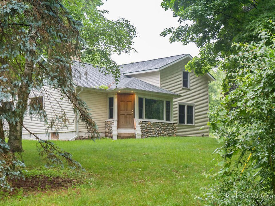 This charming 3 bedroom, 1 bath home is perfectly located in Ada.Enjoy the view of nearly four private, wooded acres from the large windows found throughout the house.Southern yellow pine floors, built-in wood accents, and a large back deck for entertaining set this home apart with it's original and timeless character. A beautiful and impressive two-sided wood burning fireplace warms the spacious family room as well as the formal dining area. With its great location and wonderful details, this home is waiting to be yours.