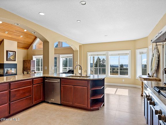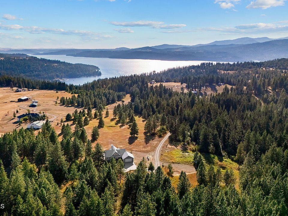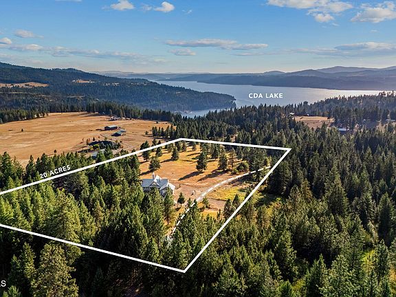 Stunning lake views and 20 gentle acres highlight this exceptional 3-bedroom, 3-bathroom home featuring 3,426 sqft of thoughtful living space!. The open concept kitchen and living room with vaulted ceilings offer french door access to a spacious deck ideal for morning coffee or evening gatherings while enjoying the abundant beautiful sunsets over the lake. Radiant heated floors throughout. The main level primary suite offers lake views, double closets, and 5 piece bathroom. The walkout basement offers remarkable versatility with a convenient kitchenette, bedroom and bath as well as media room or additional bedroom. Fenced garden delights with fruit trees and the 25x30 shop offers endless possibilities for hobbies, storage, or workspace needs. Frequent deer, elk, and moose visitors, timberland just behind the property. Lake Coeur d'Alene beaches just 5 mins away. Adjacent 20 acres is for sale as well!