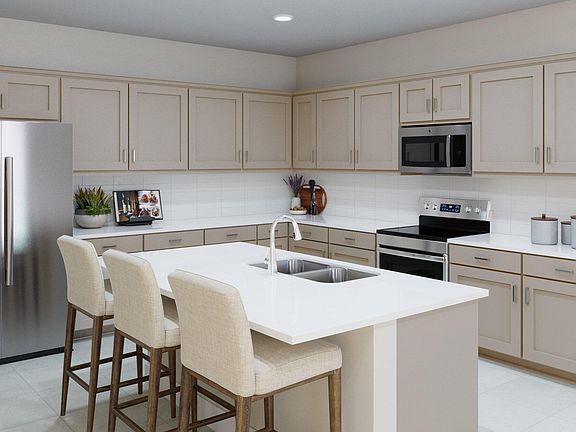 The grand entrance you have been looking for! This stunning home features 8' interior doors, stone grey shaker cabinets, quartz countertops with backsplash, large 12x24 tile throughout with carpet in only bedrooms and closets! Brand-new 4-bedroom 3-bathroom home plus a den and bonus storage space in the garage! Anticipated for completion in August 2025! Residents will enjoy access to community amenities including a swimming pool, picnic area, splash park, playground, basketball court, volleyball court, and soccer field. Conveniently located near San Tan Mountain Regional Park, Queen Creek Marketplace, and local schools, this home provides a perfect blend of comfort and convenience in a vibrant community.