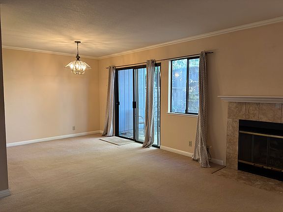 This tranquil neighborhood conveniently located to shopping, entertainment, parks, easy to get to the beach or HWY! Ideal for the professional seeking a comfortable place to make home. This lovely two-level townhome offers an open living area that flows through the entry to a functional kitchen, living room with a cozy fireplace, to the dining area adjacent to the sunlight full private patio. Up the stairwell you'll find a large primary suite with full bath, gas fireplace and a private deck. Laundry is upstairs in hall closet, loads of storage, half bath downstairs. No garage, parking is uncovered across from the front entrance.