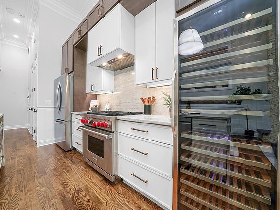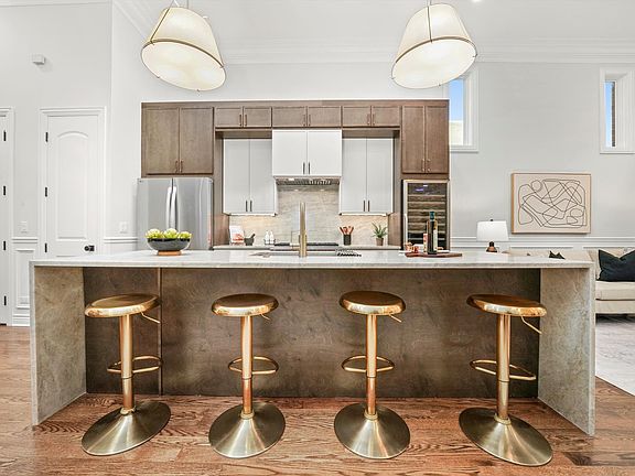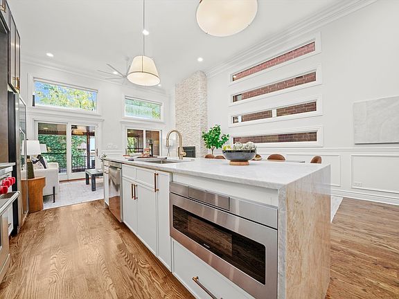 Beautifully renovated 5BR/3.1BA home featuring a brand-new chefs kitchen with beautiful quartzite countertops & full slab backsplash, 36" Wolf range, high-end appliances, dry bar for small appliance storage, glass door dual beverage centers and upright dual zone wine storage. Beautiful lighting throughout. Spacious main floor with soaring ceilings opens to a covered terrace for year round enjoyment with multiple overhead integrated heaters, flat screen TV, and built-in BBQ equipped with professional hood vent. The serene, private back yard includes mature landscaping, turf and paver stone patio and an amazing wood burning outdoor fireplace-perfect for entertaining. Composite decking on all exterior spaces, including the rear patio and both upper level front terraces. Luxurious primary suite offers a private balcony, huge custom walk-in closet, and spa-like bath with dual vanity and separate water closet. Two additional large bedrooms, full bathroom, linen closet and front load laundry round out the upper level. The lower level includes a guest suite with fireplace, full bathroom, dry sauna, additional bedroom or office and a stunning custom built wine room to display over 200 of your finest bottles. Additional 19x18 flex room with balcony-ideal for a movie theatre, billiards/game room, gym or an additional large living room. Custom wall moldings, all new paint and freshly refinished hardwood flooring throughout. Extra large temperature controlled, fully insulated and drywalled, attached 2-car garage with wide private driveway for additional parking for 2 cars. This gorgeous and unique home should not be missed.