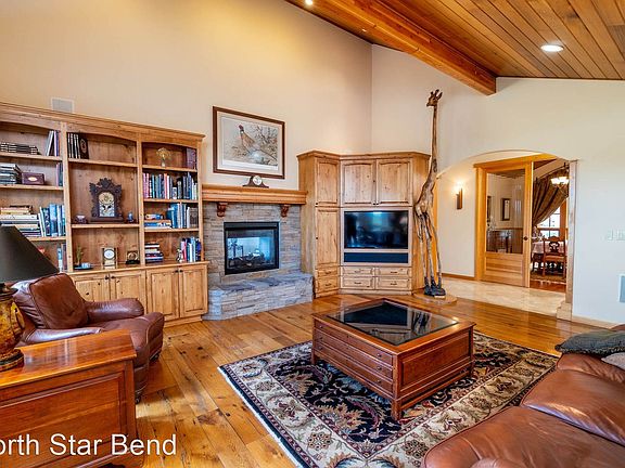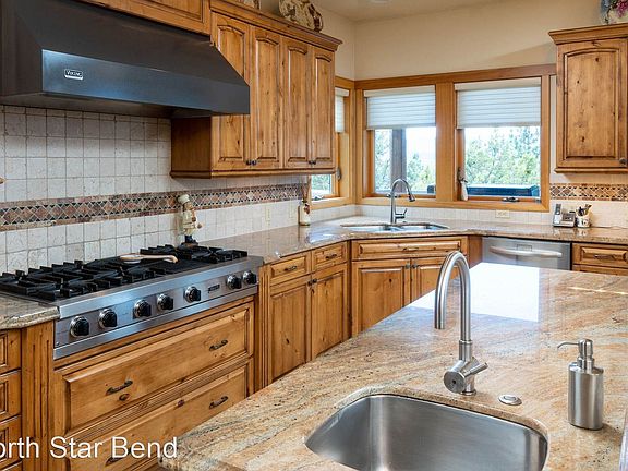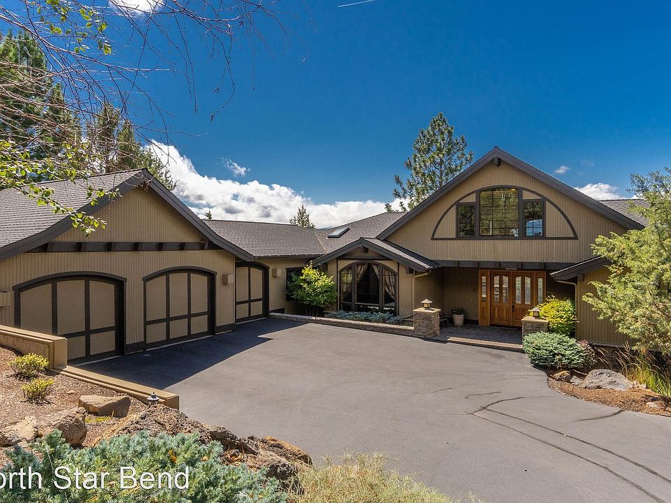 Spacious luxury living on Awbrey Butte! - A spectacular home in the North Rim neighborhood, this 4 bedroom, 5 bathroom is the best of Bend. Be welcomed into this home by a gorgeous and expansive view of the Three Sisters mountain range when you walk across a stone threshold and into a lovely sitting area with a gas fire place. Immediately you'll notice the rich wood beams, the high ceilings and all the natural light that comes in through the big windows. On the first floor, the home boasts two large living areas connected by the fireplace, an open, cozy kitchen with granite counter tops and a breakfast nook, as well as a large dining area with vaulted ceilings. There's a bonus room that could be turned into an office, with a picture window offering stunning views as well. The master bedroom has a private deck, and the master bath contains a large shower as well as a tub. Take a trip down to the second floor, where you'll be greeted by a family room, two ensuite bedrooms with patio space, a game/mud room and a wine cellar. There is also a 3-car garage with lots of space for storage. Out along the deck, there is space for patio furniture and a BBQ for you to enjoy the views Bend has to offer. Lease terms are negotiable, no smoking/vaping on property. No Pets Allowed (RLNE6390019)