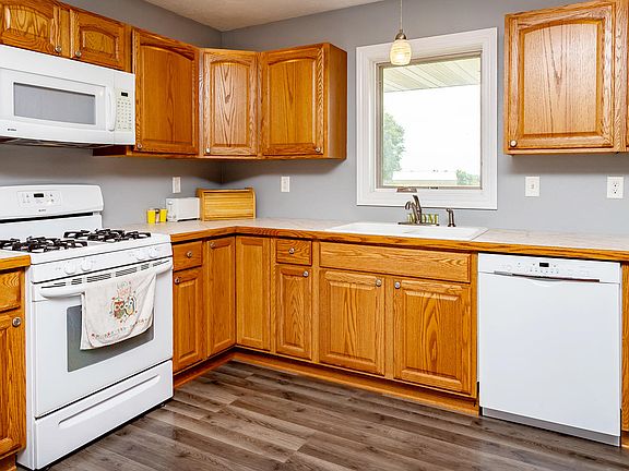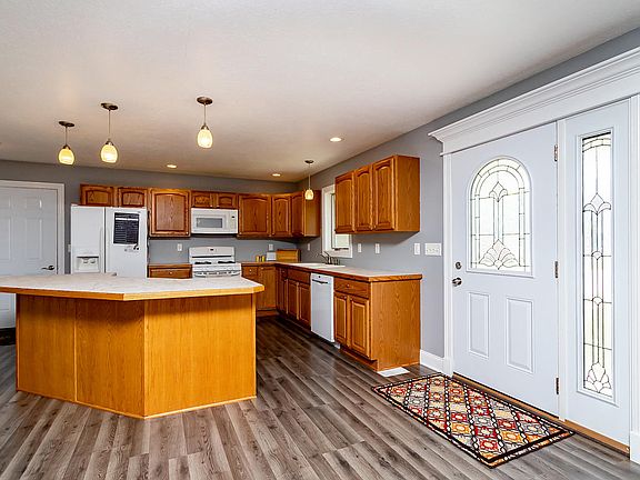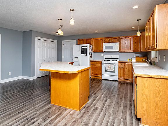 Come enjoy life in the country in the little development of Iowa Center! This 3 bed/2 bath house has a little over 2200 sq ft of living space, a huge kitchen/living room combo and a large oversized 2 car garage complete with work benches, storage and more! The kitchen has a huge island and pantry and all appliances stay. Living room has a wood burning stove that keeps the whole house warm in the winter. Nice-sized bedrooms and bathrooms and a large family room with built in desk/storage area in the lower level add to the amenities this home has to offer! Brand new carpet and flooring and fresh paint too! The lot is just over and acre and there is a nice fenced in area perfect for littles of any kind! Just a hop and a jump away from highway 30, you are minutes away from anywhere. Septic has
