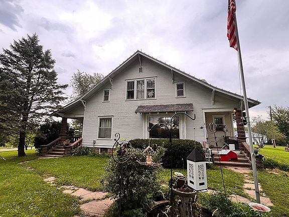 1920’s craftsman’s. All original wood work and wood floors along with original pocket doors. 4 bed 1-1/2 bath on 3 acres. 9 ft ceilings. Right off the hwy with a lot of mature trees. Big front porch with full basement. 30x50 shop and a small detached garage at the back. U shaped drive way. Needs a little tlc. Kitchen remodel 2 years ago and bathroom remodel is ongoing. Appliance stay with. New stove a year ago.