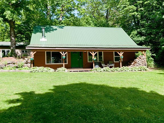 Nestled on a secluded wooded lot at the end of a quiet road, this home or cabin offers the ultimate retreat for lakefront living. With over 300 feet of level frontage on Devils Lake & spanning over 6 acres, this offering includes an additional wooded waterfront lot with endless possibilities. Step inside to discover a charming open-concept, featuring two bedrooms on the main level, complete with convenient laundry facilities in one of the bedrooms. Ascend to the open loft area, perfect for use as a third bedroom or versatile living space. Cozy up beside the wood stove on cooler evenings, or take in the breathtaking views from the covered front porch. The property boasts an oversized 30x30 two-car heated garage, providing ample space for vehicles & storage, with the added bonus of stunning lake views from the patio door. Immerse yourself in the tranquility of Devils Lake ideal for fishing, pontoon excursions, kayaking adventures, or leisurely lakeside strolls.