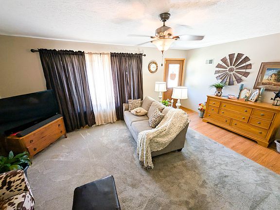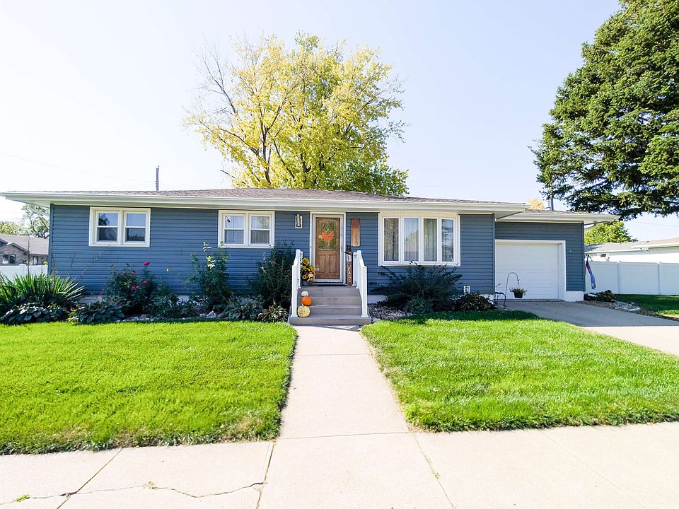 Move-In Ready! Welcome to this charming well-maintained 4-bedroom, 1-bath ranch-style home, perfectly situated on a desirable corner lot in a central location. Offering both comfort and convenience, this home features a 1-stall attached garage, a beautifully landscaped fenced yard, mature trees, and an underground sprinkler system—ideal for easy outdoor maintenance. Leaf guards on the gutters add to the home's thoughtful upkeep. Inside, the main bath features stall shower, jetted tub and dual sinks. Enjoy recent updates including a refreshed kitchen with stylish backsplash, countertops, and a new stove. New flooring in the hallway and new carpet in the upstairs bedrooms complement the professionally painted interior for a clean, modern look. The basement includes a conforming 4th bedroom and offers potential for a second bathroom and additional living space—perfect for growing needs or customization. All kitchen appliances, washer, dryer, and water softener are included—just move in and enjoy! Don’t miss out on this well priced gem with endless potential. Schedule your showing today!