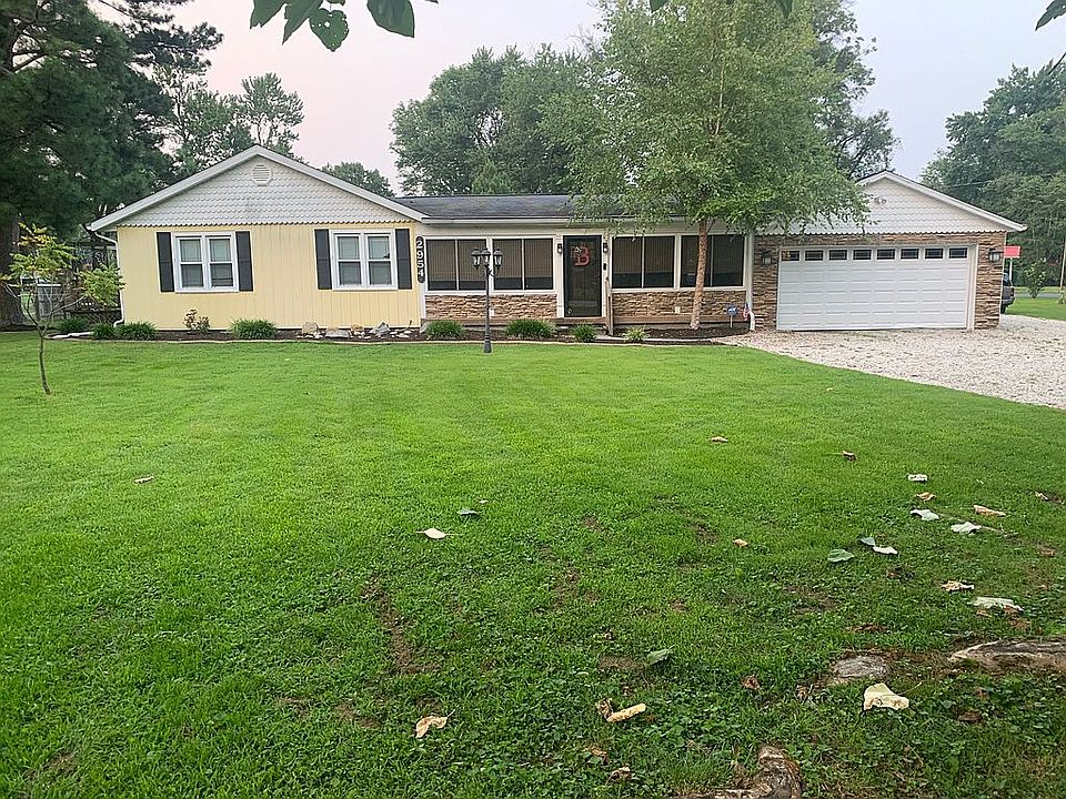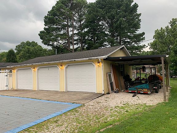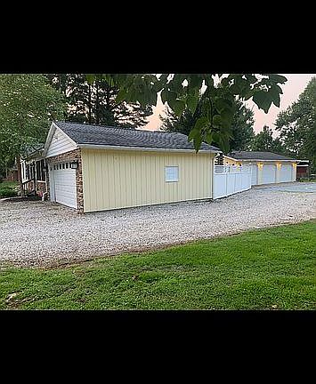 This is a 3 bedroom, 2 bathroom home with an attached 2 car garage, a detached 3 car garage and a metal storage building.