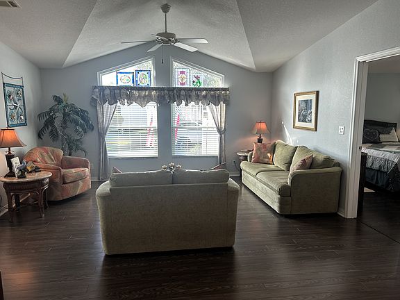 ***This home is located within Cypress Lakes Village 55+ resort style leased land community; age restrictions apply.*** Welcome to this well kept 2 bed/2 bath home with a den. This 2005 Skyliner features 1568 sq ft of living space. This home has been lived in seasonally since it was built. Updates include new metal roof in 2022, new air conditioner in 2021 and newer Thermopane windows. Beautiful Vinyl plank flooring throughout most of the home! This home also has skylights that provide plenty of Natural Light. Enjoy your back Lanai that also has thermopane windows. This home is being offered Turn-key with a Golf Cart!