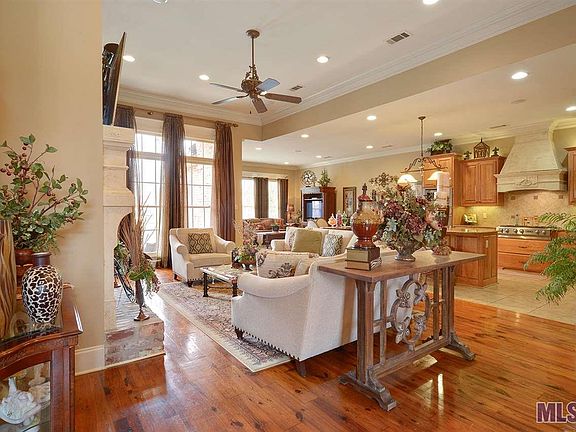 This stunning New Orleans style home offers 4 bedrooms, 3 baths, plus a office and a upstairs landing gaming/TV area. You will enjoy coming home to this immaculate home with a great back porch and upstairs balcony overlooking the lake and water feature. Many amenities are included in this beautiful home including 10 and 12-foot ceilings, custom fireplace mantle, custom vent hood, antique heart of pine wood floors,imported antique closet doors, surround sound and much, much more! The gourmet kitchen opens into the living, dining and keeping room -the perfect flow for entertaining and is complete with slab granite, custom backsplash, center island, custom milled cypress cabinets, 6-burner gas stove, large walk-in pantry and a butler's pantry off of the dining room. The neighborhood also offers, tennis courts, a full work out facility, 2 pools and a restaurant.