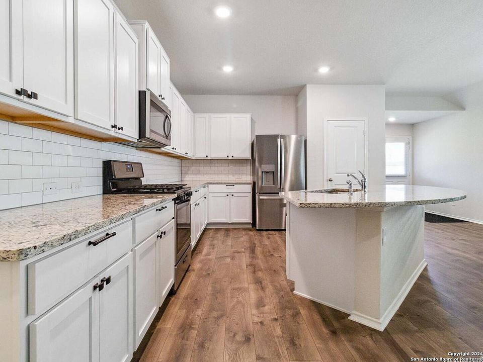 Step into the warmth of this charming single-level home, featuring 4 cozy bedrooms, 2 modern bathrooms, and a spacious 1901 square feet of inviting living area. The entrance welcomes you into a private corridor that links two well-appointed secondary bedrooms with a full bathroom. Progressing further, the home opens up to a large open-concept family room, perfect for social gatherings. Adjacent to this area lies a large kitchen with an eat-in space and dining zone. the secluded primary suite is a retreat within the home, complete with a decadent master bathroom and an additional walk-in closet, providing a tranquil escape to rejuvenate. This home is a testament to comfort and elegance, meticulously designed for contemporary lifestyles. Nestled in a master-planned neighborhood, crafted with your family's needs in mind, this community sits conveniently off Hwy 281, close to FM 1863. Here, residents enjoy proximity to excellent schools, shopping centers, beloved local eateries, entertainment options, and more. The community harmoniously blends tranquility, privacy, and an active lifestyle, ensuring a sense of belonging and contentment daily. Among the community features are an Outdoor Kitchen, Event Lawn, Fitness Center, Fire Pits, Pavilion, Club House, Playground, Pool, Splash Pad, and an On-site Lifestyle Director-all contributing to a vibrant living experience.