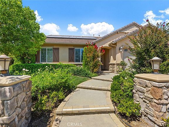 Discover this stunning formal model home nestled in the prestigious Heritage Lakes community of Menifee, where luxury meets comfort in every detail. This exquisite single-story residence boasts 3 spacious bedrooms plus a versatile den, thoughtfully designed with over 2,300 square feet of meticulously planned living space. The intelligent floor plan strategically positions the secondary bedrooms and master suite at opposite ends of the home, ensuring optimal privacy and tranquility for all occupants. The impressive 3-car tandem garage provides abundant storage and parking, while the interior showcases elegant engineered hardwood floors flowing seamlessly throughout the common areas, perfectly complemented by brand new plush carpeting in all bedrooms. The heart of the home features a magnificent family room anchored by a stunning fireplace flanked by beautiful built-in bookshelves on both sides, creating an atmosphere of sophistication and warmth. Premium plantation shutters grace every window, offering both style and privacy, while integrated speakers throughout the home provide the perfect soundtrack for daily living and entertaining. The exterior commands attention with beautiful curb appeal that reflects the pride of ownership evident in every corner of this immaculate property. Step into the backyard oasis where beautifully landscaped grounds create a peaceful retreat perfect for relaxation and outdoor gatherings. Comfort is assured year-round with a brand new compressor and evaporator unit featuring dual zone HVAC control, allowing personalized climate management throughout the home, while leased solar panels provide energy-efficient living and reduced utility costs. This exceptional property represents the perfect blend of elegance, functionality, and modern convenience in one of Menifee's most sought-after neighborhoods, where residents enjoy exclusive access to Heritage Lakes' outstanding amenities including a clubhouse, two Jr. Olympic-sized swimming pools, a splash park, a wading pool, and multiple tot-lots for family recreation. The community also provides paddleboats for lake access, catch-and-release fishing opportunities, fitness trails equipped with exercise stations, and engaging community events that foster a vibrant neighborhood lifestyle.