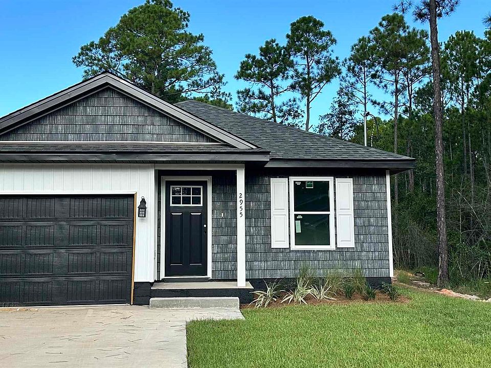 Discover this brand new home that seamlessly blends classic elegance with modern convenience. Featuring a timeless black-and-white color scheme throughout, the interior is adorned with luxurious vinyl plank flooring, providing both style and durability. The kitchen is a chef's dream, boasting high-quality Whirlpool stainless steel appliances and soft-close cabinetry topped with elegant crown molding. Matching cabinetry and granite countertops extend into both full bathrooms, creating a cohesive and sophisticated look. The home offers three comfortable bedrooms, with the master suite showcasing a stunning tray ceiling, mirrored in the living area for added visual appeal. Ceiling fans in every bedroom and the living room ensure year-round comfort. The attention to detail is evident in the craftsmanship throughout, from the carefully selected finishes to the thoughtful layout. Convenience is key with a garage featuring an electronic Wi-Fi opener, allowing for easy access and enhanced security. The property's location is ideal for water enthusiasts, situated just six blocks from one boat launch and 2.8 miles from another. For commuters, the interstate is a mere five-minute drive away, offering quick access to surrounding areas. This home represents the perfect balance of style, functionality, and location. Whether you're entertaining guests in the spacious living area or retreating to the serene master bedroom, this property provides a comfortable and stylish living experience that caters to modern lifestyles. Exterior photo is of existing new build, interior photos of colors and fixtures may differ.