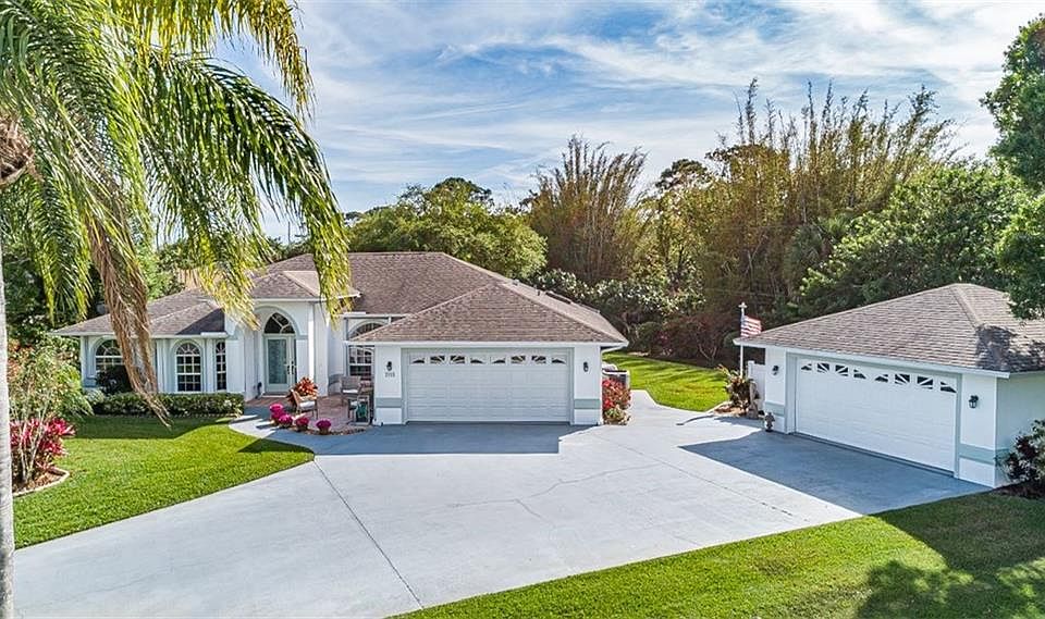 Highly desirable Country Meadows pool home sits on sprawling .41 acres. Bonus detached 2 car garage for the hobbyist or car enthusiast. Pride of ownership shows in this 3/2 + den CBS home on lovely cul-de-sac location. Lots of living space including an eat-in kitchen, formal dining & front patio to enjoy the breeze. Solar heated pool, accordion hurricane shutters, furniture negotiable.