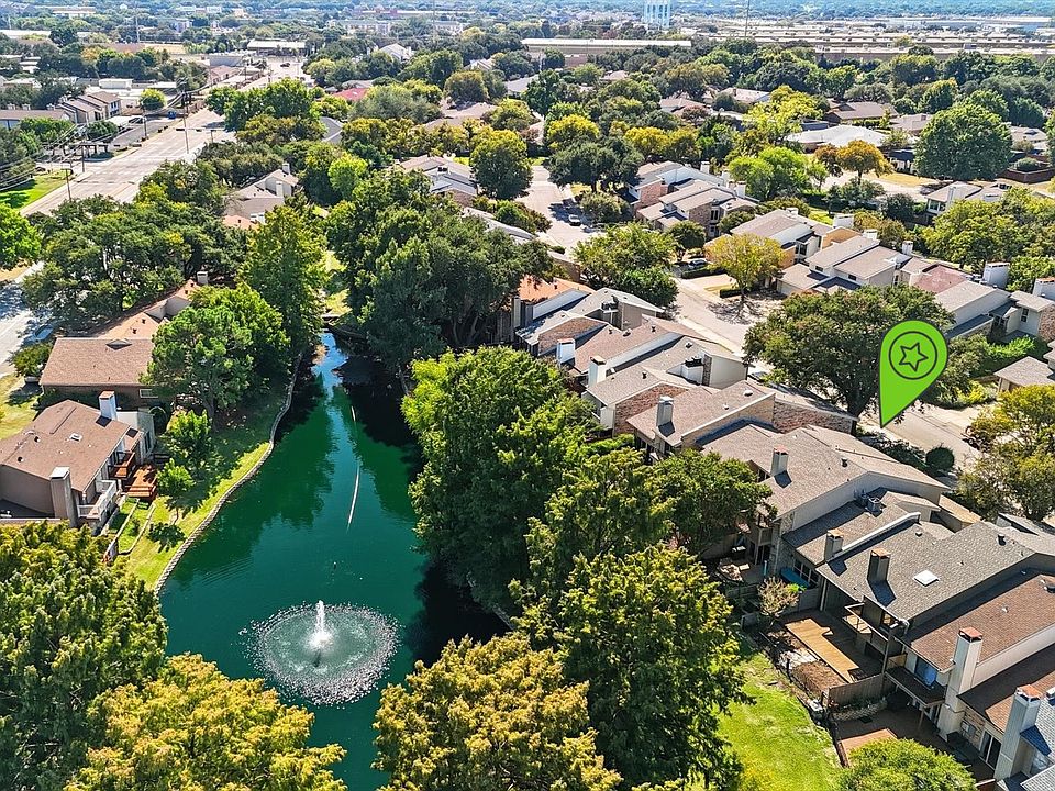 OPEN HOUSE Sat Oct 18. 12-1:30 pm Things to love about this townhome. Nestled in the heart of Country Place, scenic view of pond and fountain outside your backyard, amazing combination of thoughtful updates. Enjoy your privacy this home provides. Open living space with large windows and glass double doors framing peaceful views of yard. A cozy fireplace anchors the main living area. Updated kitchen with ample counter space, classic cabinetry, granite counters opens to the main living and also have views of backyard and pond. Half bath perfectly situated downstairs. Three comfortable bedrooms provide personal retreats upstairs. Primary bedroom with ensuite bath and private balcony overlooking the pond. Two additional good sized bedrooms, hallway storage, and an abundance of natural light. Covered patio and yard to enjoy along with treed views of pond.Prime location of this home provides easy access to community amenities: The Country Place is home to a 7,000 square-foot clubhouse located on a beautiful hill overlooking the community’s scenic lakes and pools. The clubhouse is also available for residents to rent for private events. The Country Place also provides plenty of recreational facilities such as a park, playground, fitness center with a sauna, two outdoor swimming pools, and tennis and pickleball courts, as well as fishing lakes, ponds, and a nine-hole golf course with a pro shop. In addition to these fun amenities, students living in Country Place have access to public education options within the Carrollton-Farmers Branch or Dallas ISD. Front yard maintenance is included.