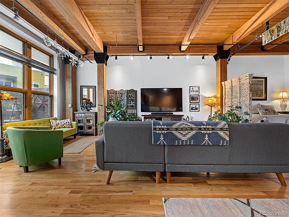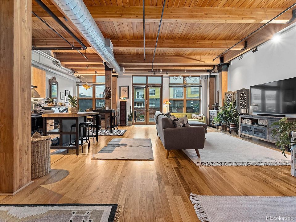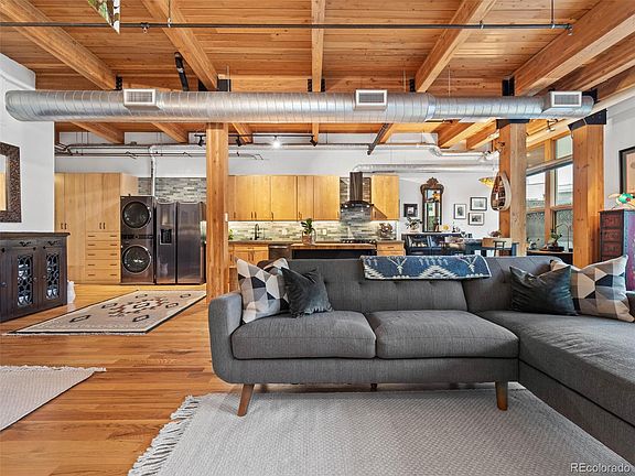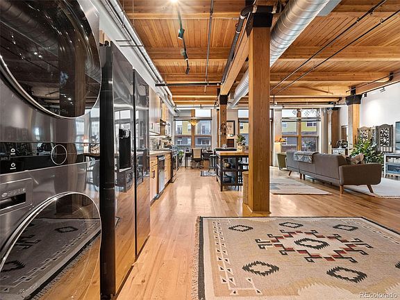 Sumptuous luxury is permeated throughout this beautifully designed LoDo loft, with features including 12’ ft ceilings, exposed timber beams and hardwood floors throughout, a professionally redesigned primary bathroom and massive custom walk-in closet + 300 sq ft of additional outdoor space with a large terrace overlooking the courtyard. While functionality and practicality are often lacking in industrial spaces, this loft is the exception. Entering into the space, you’re greeted by dramatic ceilings with exposed pipes and timber beams, a beautiful wall of custom built-in cabinetry opposite to an ideal gallery wall. Kitchen has been recently updated to include all new black stainless steel Samsung appliances and gas range, concrete countertops, custom under-cabinet lighting, and Kohler fixtures. A large, open living space concept provides endless options to create the ideal layout, especially for those working from home. Step into your “spa-like experience” in the Primary Bathroom of Your Dreams…featuring a large freestanding soaking tub, a beautiful glass-enclosed walk-in shower, finishes by Kohler, custom lighting, heated floors, and a “smart” bidet toilet with heated seat. The new 8.8 x 8 sq ft walk-in master closet with custom cabinetry is one-of-a kind. Bath & closet designed by renowned DOPE Architecture Inc. owner, Danilda O. Polanco. Additional 75-sq ft of storage above the walk-in closet. Outside French doors is a 300 sq ft terrace, ideal for relaxing, entertaining and dining Al Fresco on beautiful Colorado evenings. Located in Downtown Denver, Ajax Lofts is located just steps from Union Station and the best dining, nightlife, and entertainment that Denver has to offer. Easy access to I-25, I-70, Speer, and RTD transit. And some of the lowest HOA fees in the City. Welcome home!