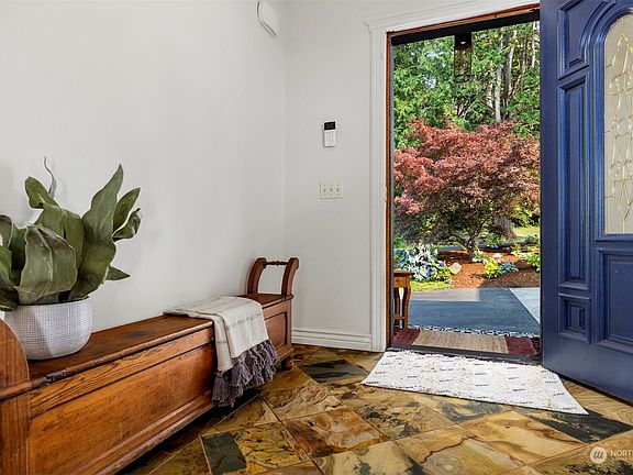 Step into this custom-built gem where spectacular unbroken views of the sound, islands and mountains stretch as far as the eye can see. The sprawling primary suite is your personal retreat, featuring a spa-like bathroom with an open shower and a dreamy soaking tub. Upstairs, a versatile bonus room awaits your imagination—be it a cozy den, game room, or creative haven. Gather around the elegant walnut-encased gas fireplace for intimate chats or host lively soirées at your expansive outdoor oasis. With nearly 2 acres of lush landscape to wander, you'll discover a perfect blend of serenity and adventure right at your doorstep. This exceptional home is a masterclass in combining comfort with the splendor of nature—don’t let it slip away!