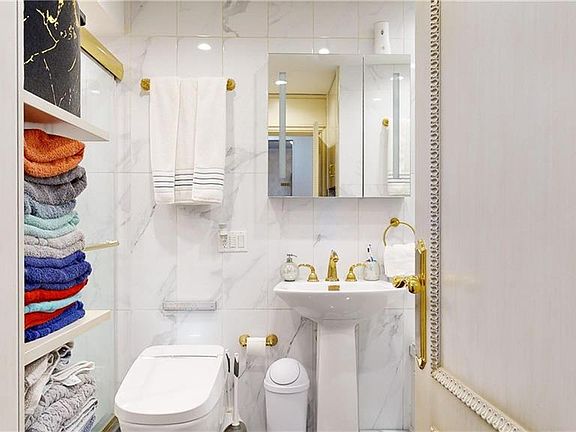 Welcome to a meticulously renovated 1-bedroom, 1-bathroom condominium nestled in the heart of Brighton Beach. Spanning approximately 810 sq ft, this spacious residence seamlessly blends modern luxury with timeless charm. Interior Features: • Custom Gourmet Kitchen: Equipped with granite countertops, custom cabinetry, and stainless-steel appliances, perfect for culinary enthusiasts. • Luxurious Bathroom: Features heated tile floors, a Jacuzzi tub, and a separate oversized custom shower adorned with crystal accents. • Elegant Flooring: Heated ceramic floors throughout ensure comfort in every season. • Private Outdoor Spaces: Enjoy two balconies—accessible from both the living room and bedroom—offering serene views and fresh air. • Modern Conveniences: In-unit washer and dryer, split-unit air conditioning and heating in every room, and an intercom system with audio and visual capabilities for added security Minutes away from the beach, next to bus, trains, schools, shops, restaurants and parks. Come see this spectacular condo!!!