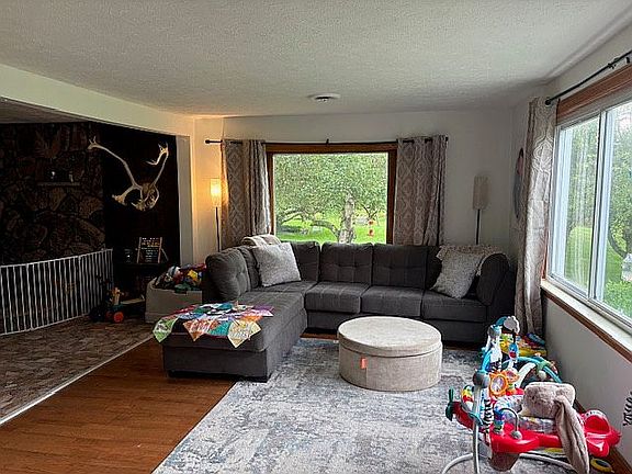 Cozy home situated on 3.27 acres of land. Living space is 2881 sq ft. This home has 4 bedrooms and 2 bathrooms. There is an attached 2 car garage, a covered patio in front and small deck off the back, and a 6 stall horse barn that sits on a large fenced in pasture. For some reason Property taxes are incorrect in Zestimate. Actually half that price.
