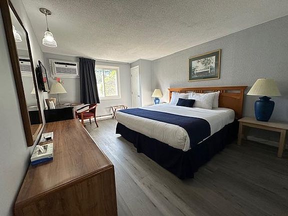 Centrally located in beautiful North Conway abutting Witaker Wood trails you will find your own guaranteed vacation destination. Walking distance to North Conway Village you will find this updated king bed unit is tastefully decorated, furnished and ready for your next get away. Updated vinyl flooring, owner closet which is lockable and is ready for your items so you don't have to bring everything up with you each time. Owners can use the property for 120 days per year (no stays longer than 14 days without permission per 30 day period). Consider this your own hotel suite away from home. Owners can customize the interior of their units. Owners can bring their pet. Eastern Inn & Suites is ready for your enjoyment with an indoor heated pool & hot tub, playground, arcade room, billiards area, onsite trails for hiking, biking, XC skiing.