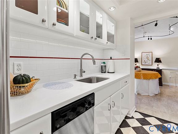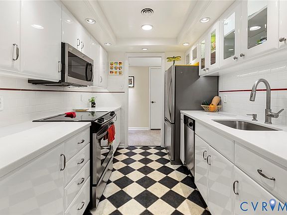 Welcome home to this freshly painted 2-bed, 2-bath condo in Hathaway Towers where you can sit at the treetop level and watch the sunset. The living room has two sliding glass doors that lead to the balcony and opens up to the dining room, which features adjustable track lighting, allowing you to show off your art. The renovated galley-style kitchen features modern glass-front cabinets, new counter-tops and a tile backsplash. The primary bedroom has a spacious walk-in closet and an attached full bath. The other large-sized bedroom has its own balcony access and a double-door closet. There is an in-unit washer and dryer, and all the windows are new along with the replaced sliding doors (Pella Brand). With the unit comes a designated covered parking space, same-floor storage, 24-hour security, gym, pool, water, sewer, trash, and cable. Close by are groceries, restaurants, shops, and the James River.