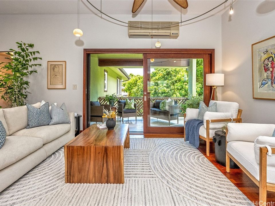 Discover tranquility and luxury in this unique Bali-inspired 3-bedroom, 2-bathroom townhome, nestled in the heart of Manoa Valley. This exquisite property is part of an unique 4-unit CPR townhome complex, offering a private pool and driveway for convenience. Enjoy the elegance of solid tongue and groove Merbau wood floors complemented by custom Merbau millwork throughout the home. Bathrooms feature stone floors and green marble, kitchen features a gas range, wine fridge and surrounding windows offering ample lighting. Unwind on your private lanai off the living room or on the large deck with breathtaking mountain views. The property is tucked in a private tropical oasis overlooking the serene Manoa Stream, yet minutes to Manoa Valley Marketplace, Manoa District Park, Noelani Elementary School, and the University of Hawaii. This townhome combines the serene ambiance of a zen oasis with the convenience of urban living. Don't miss the opportunity to own a piece of paradise in the heart of Manoa Valley.