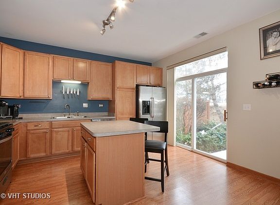 Charming porch shelters entry to this 2-bedroom, 21/2-bath home with 2-car garage. Spacious loft for 3rd bedroom/office/storage. Impressive, 2-story living room's high windows filter natural light into the adjacent dining room. Tall ceilings & large open rooms are softened by the recent paint and carpeting using current neutral colors. Family room is open to kitchen, which boasts 42-inch oak cabinets, including large pantry, great for extra storage. Breakfast bar, new stainless steel appliances & sink, except for fridge. Upper-level: large master bedroom with master bath that has a new tiled floor & walk-in closet. Guest bath has updated tile floor & vanity. Patio backs to an open field. Stunning end unit's superior location, near the rear of desirable Harvest Hills, allows for a more peaceful & safer environment due to low traffic volume. Community park has playground, fields, bike path, & tennis courts. Close proximity to shopping/restaurants/theaters & Metro. District #303 schools.