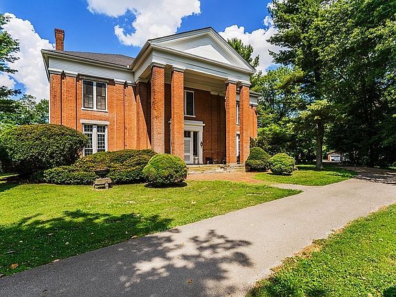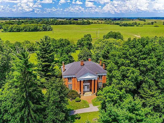 Now Known as the Bernard Hall Farm, this Greek Revival, Federalist style home was originally built in 1812 by David Crews (a Revolutionary War veteran). At present, this home has been in the same family since the early 1900's. There are 12' pocket doors, original hardwood floors, plantation shutters, a modern kitchen in a back addition of the home, 6 total bedrooms, 2 full bathrooms. The main level has central HVAC & upstairs has heat only in the bathroom. Several replacement windows throughout. The home previously known as the Samuel Bennet House Homelands was registered with the National Historic Registry in 1989. Designed in the hall-parlor plan, the two story house has 6 course common bond brickwork with jack arches over the windows. This home sits in the center of 5 very private acres w/mature trees, circle driveway, gated front entrance and a location ideal for many. From I-75 Exit 95 this home is located 1.2 miles. And 7 miles from Lexington, KY. Serious & qualified showings.