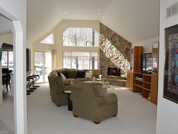 Wonderful one-owner ranch home in desirable north Hudson! Pride of ownership truly shins through! Enjoy the open concept design encompassing great rm, living/dining rm & kitchen. The stylish stone fireplace w/ raised hearth provides a wonderful focal point for this entire area. A wall of windows in the great rm, along w/ numerous large windows throughout , welcomes in natural light & offers views of the private picturesque .95 acre, professionally designed by Pettiti Landscaping. The cathedral ceilings featured throughout this home add architectural interest, as well as adding to the bright & open feel. The kitchen w/ porcelain tile floor & granite, features an attractive tile backsplash, island & custom maple cabinetry. Glass sliders in both the kitchen & great rm offer access to the wood deck complete w/ built-in gas grille & custom bench seating. A wonderful spot to relax w/ friends while enjoying nature! Unique split floor plan w/ two bedrms located on either side of the home, perfect for a teen suite! The cathedral ceiling master bedrm w/ wall of windows, offers a dressing area w/ two walk-ins & a large linen closet. Glamour master bath offering dual sinks, oversized walk-in tiled shower & Jacuzzi tub. This side of the home offers a 2nd bedrm currently being used as an office & a guest powder rm. On the other side of the home, are two additional bedrms, hall bath & laundry room.3-car garage.H2O Tank '13, A/C '13. Many extras Security System,Generator,Sprinkler System
