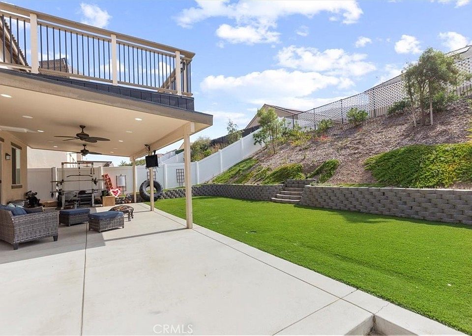 HUGE PRICE REDUCTION! Welcome to your dream home. This beautifully maintained two-story residence offers 4 spacious bedrooms, 3 full bathrooms, and 2,202 square feet of thoughtfully designed living space — all with NO HOA! Step inside to find elegant tile flooring, plantation shutters, and an extended tiled dining room perfect for gatherings. The open-concept layout flows seamlessly into a stylish kitchen and living area designed for both comfort and entertaining. Upstairs, the master suite is a true retreat with custom French doors opening to a private balcony. The spacious upstairs loft offers endless possibilities- perfect as a second living area, home office, playroom, or entertainment space. The backyard is your personal oasis, featuring low-maintenance artificial grass, a custom retaining wall with proper drainage, and a covered patio with built-in Bluetooth speakers, lights, and fans—ideal for enjoying year-round outdoor living. Additional features include: Smart door lock for modern convenience. Cement walkways with drains around the house for durability and function. Curb appeal galore with a fully landscaped front yard featuring artificial grass. Most furniture pieces will stay with the home! Just a short walk from Shadow Rock Park, this home offers easy access to a beautifully maintained community space. Enjoy a scenic walking trail, a spacious dog park, basketball courts, a playground, and even a fun zip line for the kids. This home combines luxury, practicality, and technology—all with no monthly HOA fees. Don’t miss this opportunity to own a move-in-ready, newly built home in a highly desirable neighborhood. Come check out this beautiful home in a developing community that is close to the newly built shopping and dining centers. Also, conveniently located to the major freeways.