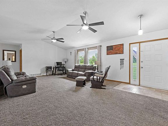 Your slice of Iowa County countryside awaits! This lush 1.23-acre property offers the perfect blend of peaceful rural living & convenient access—just 20 minutes from Tiffin, far enough to escape the everyday hustle & bustle. The ranch-style home is move-in ready & thoughtfully designed. The main floor features vaulted ceilings, a spacious kitchen with stainless steel appliances & a newer vent hood, a large primary suite, 2 additional bedrooms, & an updated main bathroom. Downstairs, the finished lower level is ideal for entertaining with a rec room, bar area, third bathroom, fourth bedroom, a hobby-friendly shop room, & plenty of storage space. Recent upgrades include a whole-house generator, whole-house ventilation system, & added blown-in insulation for improved efficiency & comfort. Step outside to your private backyard retreat—fully fenced & packed with features: garden beds, abundant berry bushes, & 2 sheds (one perfect for a chicken coop). Whether you're dreaming of a mini-homestead or simply a quiet place to call home, this property has it all!