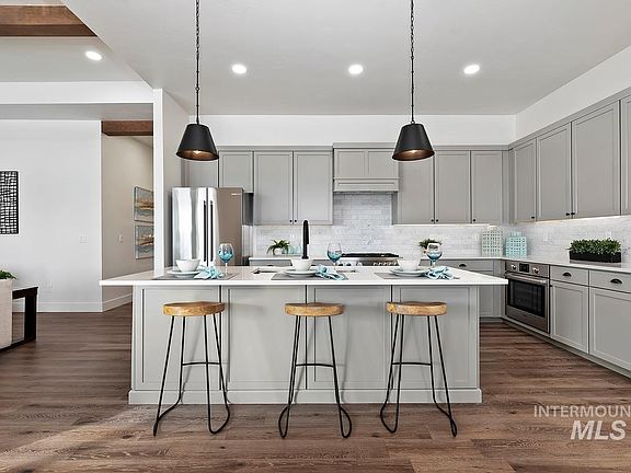 Welcome to the “Newport” by RTL Homes! This home site location is second to none! With no back neighbors, you can enjoy the feeling of open spaces and living much larger than what you will need to maintain. This home's great room, and east facing back yard with an oversized back patio are perfect for entertaining, or just relaxing and enjoying the mountain views! The Newport features 10’ Ceilings with 11’ tray ceilings and beams, 8’ Doors, an oversized kitchen island! This home is as luxurious as it is family friendly. The kitchen boasts a 36’ Italian made Bertazzoni Range, with a Bosch secondary oven! Quartz countertops throughout, custom cabinetry with soft close, and under-mount lighting, floating shelves, designer hardwood flooring. The Master Suite features tile floors, free standing tub, full tile showers, and the master closet connects to the laundry room. This beautiful home has front/back landscaping, and full fencing. RTL Homes created a turn key home ready for you!