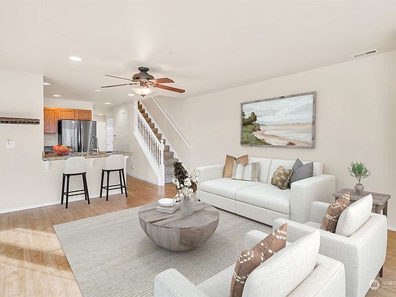 This move-in-ready condo welcomes you with a flexible entryway leading to a versatile room boasting 2 storage closets, perfect for formal dining, living, play, or work. The main floor features a powder room and a granite kitchen equipped with stainless steel appliances and an eat-in counter. The open kitchen seamlessly flows into the dining/family room area, highlighted by a gas fireplace and abundant natural light. Upstairs, you'll find your primary and guest suites, each with spacious closets, and one offering a jetted tub. Enjoy the convenience of a tandem two-car garage with storage. Ideally situated near shopping, schools, dining, parks, and freeway access.