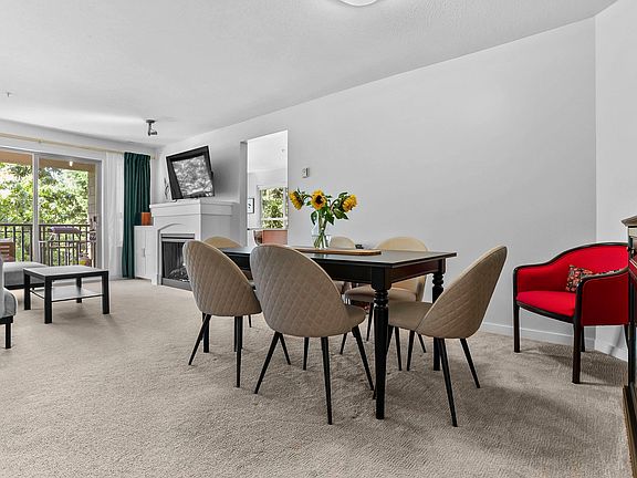 Rare find. The space of a house with 3 bed & 2 bath CORNER/END condo. Over 1200 sqft, this home with a proper foyer entry opens to a large living/dining area—perfect for entertaining. Bedrooms on opposite sides for added privacy. Generous primary plus two full-size bedrooms with room to spare. Updates: gas stove, newer appliances, quartz, refurbished kitchen cabinets, fixtures, fresh paint, window coverings, new carpet in the hallway, & a roof that's less than a year old. A well-managed strata that allows A/C, pets & rentals. Year-round balcony surrounded by mature landscaping—offering both shade and privacy. Nearly every window frames lush greenery, creating a tranquil, treehouse-like feel throughout. In a resort-style complex with a gym, outdoor pool - hot tub, party & games rooms.