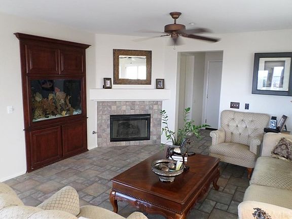 Very attractive 4 bdr. home with spectacular 180 degree city lights view. Upgrades abound in this lovely 2 story home including upgraded kitchen cabinets with glass doors, a rich sound system with music and audio piped in throughout, a very unique built-in salt water aquarium in the family room, and custom french doors with side panels. Other highlights include stainless steel professional level appliances for you cooking enthusiasts, complete with a center island, plantation shutters in many rooms, a spacious walk in closet in the master bdr. and a jetted tub to relax in at the end of a hard day. Beautiful tile floors laid in unique patterns accent the entire downstairs, as well as the bathrooms. Outside you will enjoy not only the view but also the detached lattice patio with stamped concrete cobblestone deck. The floor plan is presently configured as a 4 bdr. but the downstairs bonus/den is spacious enough to add a closet to create a 5th bdr. , as right next to this room is the convenience of a 3/4 bath. The HOA dues are affordable at only $118/mo. and its amenities include 3 club houses, 2 pools, inviting walking trails, and a private gated lake with fishing! This home is ready for your Fall move-in!