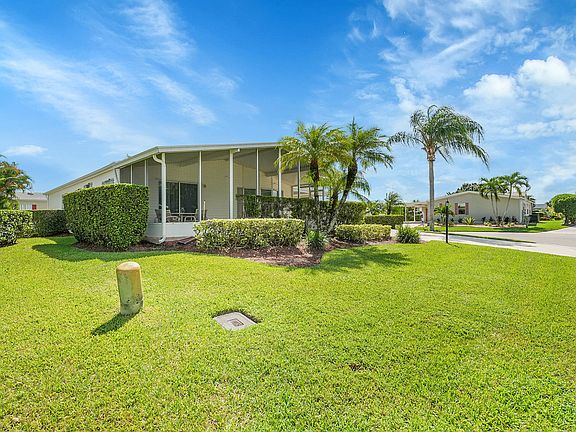 Beautiful corner ...nicely landscaped. lovely 3/2/1 carport, big 30 x 12 screened porch, shed 15 x 10 with electric. Huge kitchen, granite counter tops WITH BREAKFAST BAR AND stainless appliances. Laundry rm with washer & dryer. luxury vinyl floors, carpet in bedrooms. Sprinkler system. Home well maintained. NOTE: Land Leased property