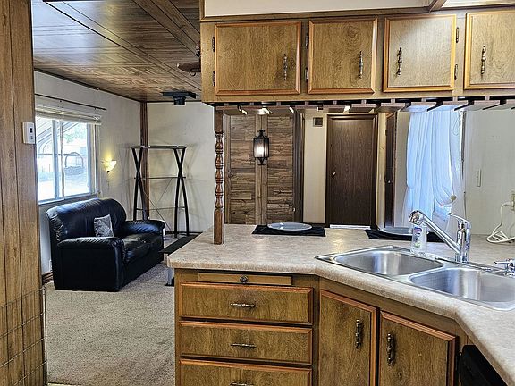 Rare opportunity to own a home under $200k! Land has fruit trees, shrubbery, room for a garden and two sheds with work benches. One shed has electricity, the second has a window A/C unit. Irrigation system installed, but it's unknown if it is still operating. Lots of storage space inside and out. Both bedrooms are large, located on each end of the home and have their own bathrooms. There is a huge opportunity for equity with a little TLC. The home has been purged to the land.