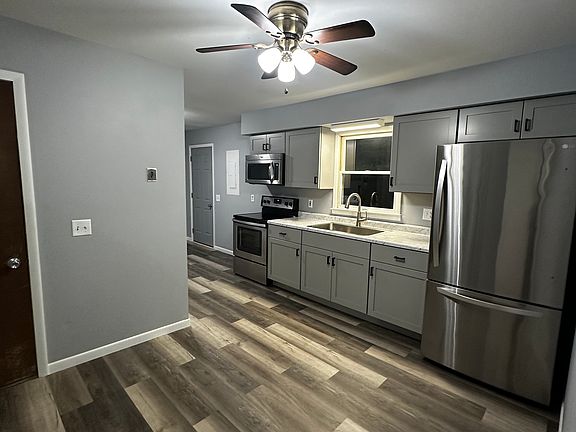 Completely updated 2 bedroom, 1 bathroom half duplex unit for rent in Lake Village, IN with an attached single car garage and a large fully fenced in, shared backyard. Stainless steel appliances (refrigerator, microwave, and electric oven/stovetop). Washer and dryer included in unit. Property completely updated over the past few months including: new flooring throughout, painted, new cabinets, countertops, and kitchen sink, new tub/shower insert in bathroom as well as a new vanity and new toilet. Unit has electric baseboard heating in every room, with thermostats in each room to control temperature. Unit does not have central air. One window unit provided. Unit does have working ceiling fans in every room. Property has private well and septic, so no town utilities. Tenant to pay NIPSCO (electric only, there is no gas line attached to this property). Landlord pays for garbage. One tote per unit.