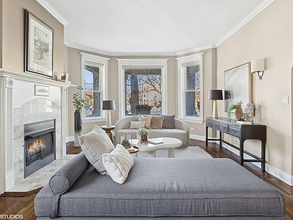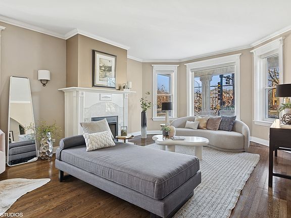 Stunning graystone single-family home on an extra-wide corner lot in a prime Logan Square location. One of the most striking facades on the Boulevard; replete with ornate details including a gorgeous cornice and handsome carved columns with a fantastic covered front porch. Black windows, an iron fence, and mature landscaping complete the exterior. The limestone facade continues all the way around the side of the home and culminates with a side-loading limestone 2 car garage. This property was thoughtfully converted into a sprawling single family home, with all mechanical, electrical, and plumbing systems updated to modern standards. The corner lot is extra wide at 29 feet, which translates to a spacious interior layout with fantastic natural light from all directions. The rooms are oversized throughout the home including a huge living room with fireplace & formal dining area. The chef's kitchen features a large island that overlooks the family room. From the kitchen you can step out directly onto your rear deck and the new attached garage roof deck, which has views of a nearby community garden. This is a wonderfully functional outdoor space. Upstairs there are 3 bedrooms and an office. The large primary suite has a gorgeous fireplace and steps directly out onto a serene balcony overlooking Logan Blvd. There is also a huge walk-in closet and a recently updated en-suite bathroom. Two additional bedrooms share a large hallway bathroom and there is a large office & sunroom which steps out onto a rear deck. The basement features a rec room, a full bathroom, and abundant dedicated storage. In the rear of the basement there is a large bedroom which opens directly to the back yard which could make a fantastic in-law suite or Airbnb. Move right in to this extremely well kept home or update the finishes and create a customized stunner. This is perhaps the perfect Logan Square location with easy access to the train, expressway, and shopping, while still being located on a tree-lined boulevard. The Farmer's Market, Michelin starred restaurants, and celebrated Brentano Elementary are just a short walk away.