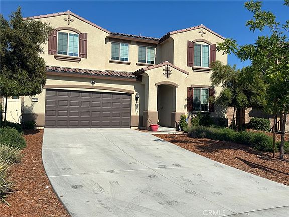 This beautiful home is located in the gated community of Reflections at the Lakes community in Menifee. The home has 5 bedrooms and 3 full bathrooms. There are also 2 flex rooms that can be utilized as bedrooms, office space, playrooms, man-cave, or even home entertainment rooms. Kitchen has a walk-in pantry, upgraded white cabinets, quartz countertops and a large island. One bedroom, full bathroom and a one flex room are located downstairs. Upstairs are the remaining bedrooms and full bathrooms, a large flex room and laundry room - washer and dryer are included. The spacious master suite features a walk-in shower, large walk-in closet and double sinks. There is ceramic floor tile throughout with carpet in the bedrooms and flex rooms. Downstairs two large sliding doors lead out to a 40’ alumawood covered patio with stamped concrete, ceiling fans, lights and a wall mounted tv, perfect for entertaining and barbecuing. The fully landscaped backyard has an automatic sprinkler system and two planter beds ready to plant your garden. The swing set with slide, along with the overhead storage racks in the garage, can stay if desired. Buyer will need to assume Tesla solar lease. Reflections at the Lakes HOA amenities include recreational lakes with catch and release fishing, canoeing, swimming pools, spa, water slides, splash park, fitness center, several parks, BBQ area, recreation center, and walking trails to help you stay active year-round.