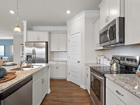Now Available for Rent! This beautifully maintained Greenbrier Floorplan by Smith Douglas is located in the desirable Sawgrass community. Very Low HOA Fees Community. The home features an extended fireside family room, offering excellent flexibility for your furniture layout. The main floor includes an open-concept kitchen with an island, upgraded cabinetry, granite countertops, a tile backsplash, and a corner pantry. Luxury vinyl plank flooring adds style and durability throughout the main level. Enjoy outdoor living with a rear patio. Upstairs, the spacious Owner's Suite sits at the top of the stairs, with a large loft and two secondary bedrooms just beyond. Both levels boast 9-foot ceilings, and the second floor includes a convenient laundry room. These Pictures are of a Model home. They are only for illustrative purposes These Pictures are of a Model Home. They are only for illustrative purposes