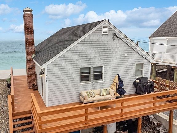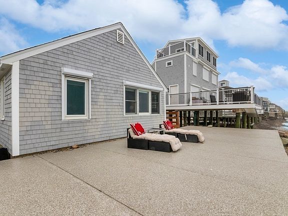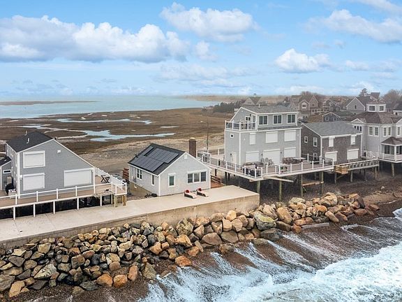 Enjoy your Private Beach with this wonderful 1 bed/2 bath bungalow with Surround Water Views! Rare Opportunity to own on Humarock beach in Scituate, just in time for summer! Open layout flows easily both inside to outside living. Kitchen features gas cooking, granite counters & large island for entertaining. Guest bath with blue-green tile shower. Savor the ocean view from the dining area & cozy up to the wood burning fireplace on the sofa. Fantastic primary suite with king-sized bed and private bath with oversized walk-in shower and marble countertop. All furnishings included in sale! Full basement for storage, plus washer/dryer. Transferable Flood Insurance just $2,729/year! Renovations in last 4 years include: sea wall rebuilt plus decks and railings stained, new roof including structural reinforcements & solar panels installed, fireplace chimney rebuilt, primary suite and bath plus windows, storm shutters & more! Tall attic gives possibilities too! Make this treasure yours!