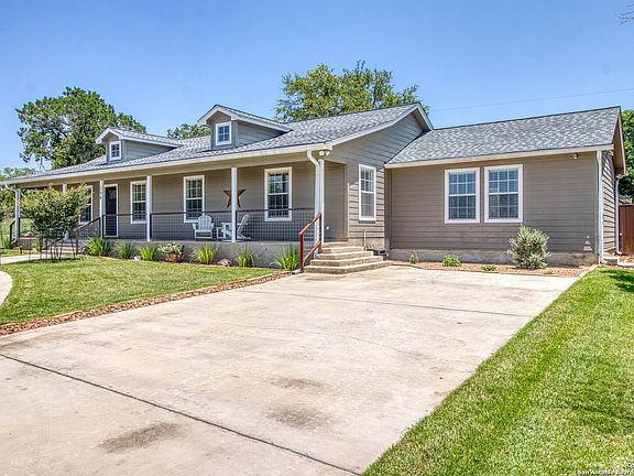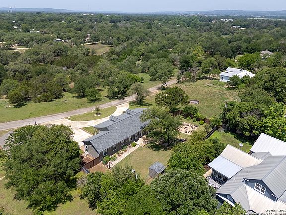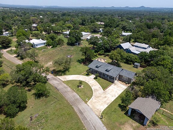 Immaculate Texas Hill Country Retreat with Smart Home Features & Stunning Outdoor Living Nestled just outside of Bandera's city limits. This beautifully updated 4-bedroom, 2-bathroom home on .379 acres is the perfect blend of modern comfort and Hill Country charm. Offering smart home features, a spacious split floorplan, and impeccable seller upgrades, this home is truly a standout. Inside, the living room is a cozy yet spacious, designed for both relaxation and entertaining. With vaulted ceilings and stunning touches like a gorgeous rock fireplace featuring an electric fireplace insert, this room exudes warmth and character. A stylish wall-mounted TV above the fireplace offers the perfect focal point. The shiplap accents add a touch of rustic charm. The chef's kitchen is a true showstopper with quartz countertops, a subway tile backsplash, a hidden reveal stainless sink, a large walk-in pantry/laundry room, and a kitchen bar area-perfect for hosting guests or enjoying a casual meal. The open flow between the kitchen, dining, and living areas creates a perfect atmosphere for gatherings. The primary bedroom suite is a private retreat with vaulted ceilings and an abundance of natural light. A charming sliding barn door leads to the master bathroom, which has been elegantly remodeled with new tile, a dual custom vanity, and a huge custom limestone rock walk-in shower-the ultimate in relaxation and style. The split floorplan also includes a large guest suite with private outdoor access-ideal for visitors or multi-generational living. Additional two bedrooms, both with vaulted ceilings, are versatile spaces that can easily be transformed into an office or workout room. Step outside to find a professionally landscaped yard with new trees, crepe myrtles, and new plantings. Zoysia drought-tolerant grass ensures a lush lawn with minimal upkeep with the new sprinkler system. Enjoy the outdoors with several living areas, including a covered front porch, a firepit area, and a grassy patio with chaise lounges to soak in the sun. There's also a patio just off the kitchen perfect for barbecuing and entertaining guests, as well as a dog run/kennel with a doghouse-perfect for pet owners. Additional features solar-powered motion-sensor pathway lights, new window and gutter screens, and an outdoor storage building. The home's energy efficiency has been enhanced with added blown insulation, while oak trees on the property provide both beauty and shade. For even more space, the adjacent .356-acre lot (Lot #8) is also available for purchase. This lot has been cleared and is ideal for a buffer zone or for future development-offering endless possibilities. This home is move-in ready and offers the perfect combination of luxury, privacy, and convenience.