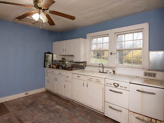 This two bedroom, one bath home is located a half-mile from downtown Lewisburg, West Virginia in a delightful neighborhood. An older home that deserves some renovation, this property has great potential with a very workable interior layout and a lovely setting that is discretely set-back from Frazier Street, and the unique benefit of being situated on two lots offering a spacious yard with added flexibility for outdoor living or future use. The living area is brightened with multiple windows and warmed by a large fireplace. This living area conveniently connects to a study, the kitchen, and one of the two bedrooms. The study has built-in shelving and work surfaces, as well as a small closet. The kitchen has ample countertop space and room for a small dinette table, making it a very workable space. The two bedrooms are side-by-side and are connected with double glass doors. A large bathroom is in mid-renovation and has lots of design possibilities.