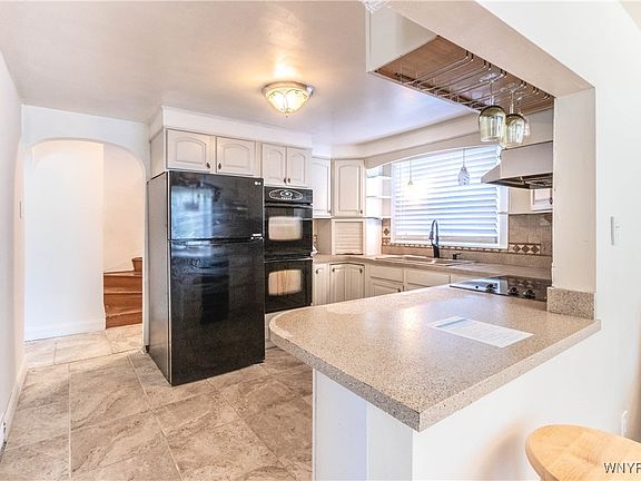 Masterfully maintained home just steps from the UB South campus! This 5 bedroom 2.5 bath home with a fully fenced yard and 2 car garage complete with a wood burning fireplace and wet bar in the basement rec room. As you enter the front foyer you are greeted by loads of natural light from the updated windows and open space. The kitchen has a lovely breakfast bar and built in electric cooktop and double ovens! The first floor has two large bedrooms with built-in closets and a beautifully updated tile bathroom with ornate pedestal sink. The second floor has three bedrooms including an owner's suit with attached bathroom. Enjoy your time in a large backyard with a deck and patio space.