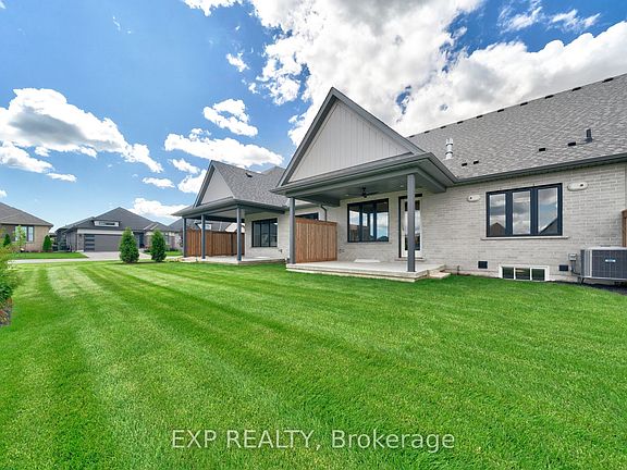 Welcome to WaterCrest at Hunters Pointe -- an exclusive 55+ active adult community in north Welland, in the heart of Niagara. This is one of the final releases from Lucchetta Homes, known for thoughtful design, quality finishes, and architecture that stands out. Monthly fees of $265 include access to a full suite of amenities: indoor saltwater pool, fitness centre, tennis and pickleball courts, hot tub, sauna, games room, library, banquet space, lawn care, driveway snow removal, and monitored security. The lifestyle value here is unmatched. This interior model, the Haven, offers 2,109 sq ft of finished living space with 2+1 bedrooms, 3 bathrooms, and an attached garage. The layout is open and airy, with 9 ft. ceilings and a cathedral ceiling in the great room. Oversized windows bring in the light, and a covered rear deck adds outdoor living space. Built to Energy Star standards, this home outperforms typical Ontario Building Code homes by 20% thanks to efficient mechanicals and smart construction. Outside, the brick, stone, and stucco facade pairs with an asphalt driveway, irrigation system, and a clean landscape package. Inside, you'll find hardwood floors, quartz counters, tiled shower surrounds, pot lights, and custom details throughout. The kitchen features full custom cabinetry with dovetail drawers, LED under-cab lighting, quartz surfaces, and tile backsplash. The great room centres around a gas fireplace with 24x24" tile surround and a white oak-stained mantel. The finished basement adds a rec room, bedroom, bath, tiled landing, painted doors, and upgraded carpet. Aria flush-mount vents, white oak railings with glass inserts, and designer finishes complete the home. This is your opportunity to be part of WaterCrest's final phase. Make it yours!