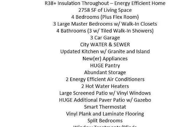 New Owner Wanted! *SELLER OFFERING UP TO 3% BACK FOR CLOSING COSTS!* Updated & E-X-P-A-N-D-E-D! Main House w/ MASSIVE ADDITION (2023)! Large OVERSIZED Lot - .35 Acres! New Metal Roof! Impact Low-E Windows Throughout! R38+ Insulation Throughout - Energy Efficient Home! 2758 SF of Living Space! 4 Bedrooms (Plus Flex Room)! 3 Master Bedrooms w/ Walk-in Closets! 4 Bathrooms (3 w/ Tiled Walk-In Showers)! 3 Car Garage! City WATER & SEWER! Updated Kitchen w/ Granite and Island! New(er) Appliances! HUGE Pantry! Abundant Storage! 2 Energy Efficient Air Conditioners! 2 Hot Water Heaters! Large Screened Patio w/ Vinyl Windows! HUGE Additional Paver Patio w/ Gazebo! Boat / RV / Recreational Vehicle Storage and Access Gate! Smart Thermostat! Vinyl Plank and Laminate Flooring! Split Bedrooms! Window Treatments/Blinds! Amazing Location! Alarm & Camera System! Hot Tub! Gutters! 2 Large Sheds! NO HOA/CDD/Community Fees! *SOME RESTRICTIONS APPLY / SUBJECT TO CHANGE*