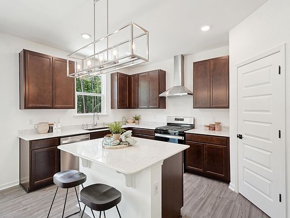 Discover comfort and convenience in this gorgeous two-story home. Boasting an open floor plan, 9-ft. ceilings, and luxury vinyl plank flooring throughout, this residence is ideal for both entertaining and relaxation. The modern kitchen offers an island, quartz countertops, and stainless steel appliances, including a gas stove. A first-floor bedroom with a full bath provides additional functionality. Upstairs, the primary suite provides ample space with a walk-in closet and dual-vanity sink. An accommodating loft that can be used as a home office or exercise area makes this home even more appealing. Unwind on the extended back patio after a long day and experience the tranquility of this stunning home.